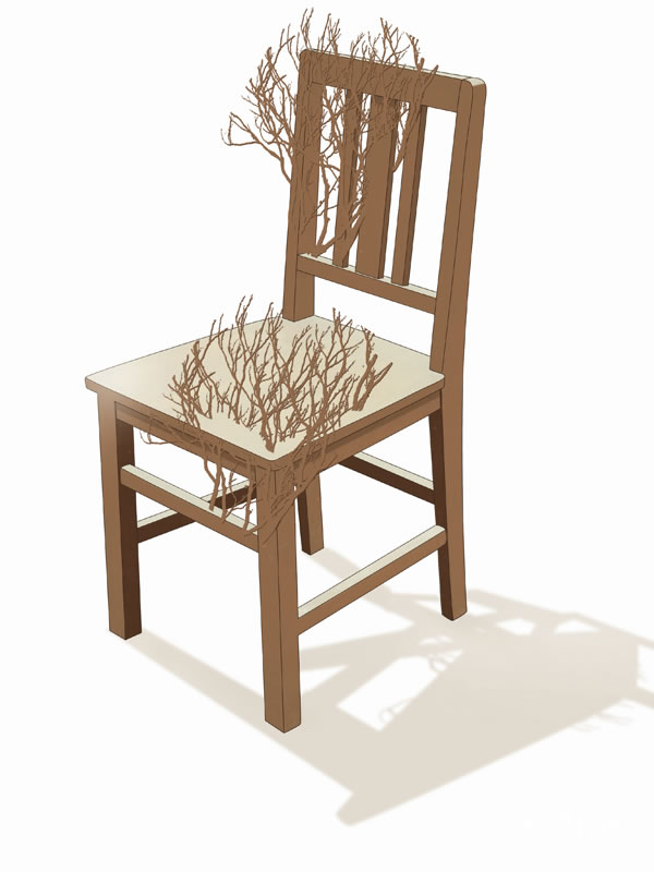 椅子的使用功能被人為去掉之后,它是否還可以被稱之為椅子,這不是我關(guān)心的問題。我感興趣的是造型,樹枝的造型和現(xiàn)成椅子的造型本身毫不相干,把它們弄到一起,不知道會(huì)怎么樣,這讓我覺得好玩,我就試著做,于是它就被做出來了。