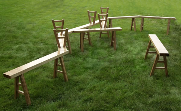 中國傳統(tǒng)老家具——長條凳,對于很多人來說,這種坐具象征著一段回憶、象征著一種風(fēng)格、象征著一種生活方式……這件作品可以提供多種坐的行為,可坐、可騎、可躺、可倚,賦予了老長條凳全新的感覺。