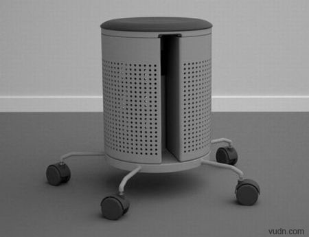 紙簍和椅子是辦公室里不可或缺的物品。這款轉椅將字紙簍安置在了轉椅椅墊下方,要想扔垃圾,您還得站起來。雖說扔垃圾的步驟變得繁瑣了,但它卻讓您無形地進行了更多運動,何樂不為呢?