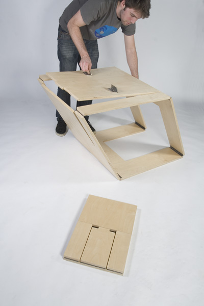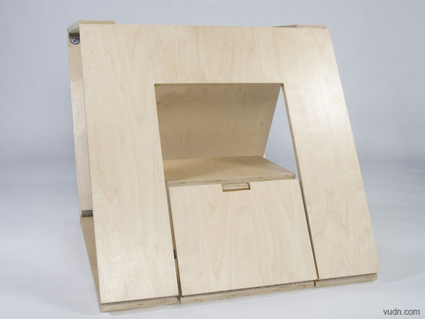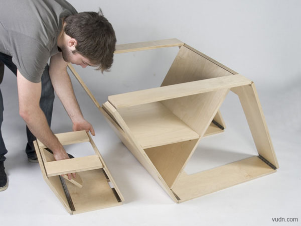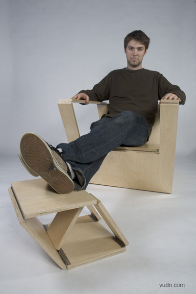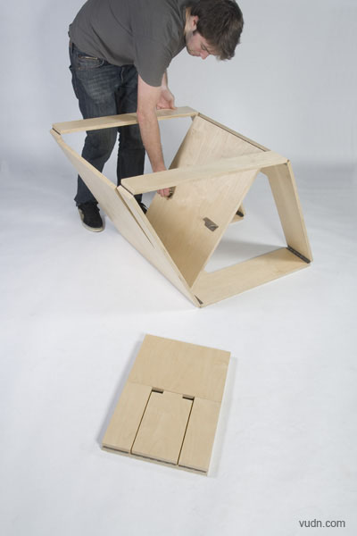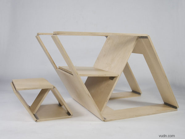 這是一款非常簡約、便攜的座椅設(shè)計:在不使用的時候,您可以將它折疊成一個平板,無論是運輸、還是存放,都非常節(jié)約空間。這樣的優(yōu)勢好像與我們家里普通的折疊椅沒有什么區(qū)別。但是您再看看它的使用方法和造型,一定會感到非常的另類,屬于極客一族喜歡的家具。