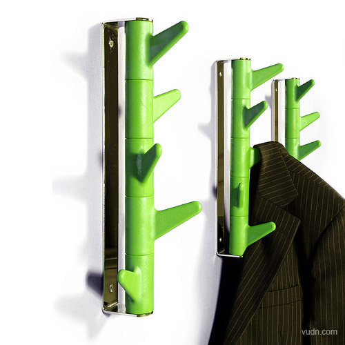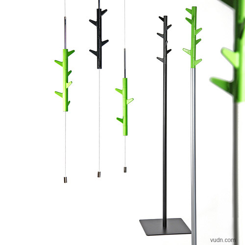 這是一款叫做OKA的衣帽架。黑色和綠色,后者像樹干或是竹子,簡(jiǎn)約清新??梢怨潭ㄔ趬ι希瑨煸谖蓓斏匣蚴秦Q立在地面。