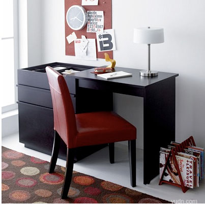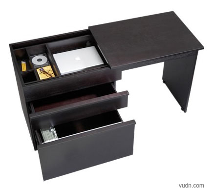 這款桌子可以為您節(jié)約空間:在不使用的時候,它就像一個五斗柜,里面可以放很多物品;需要找個地方辦公的時候,您可以省去一張辦公桌,將這個“五斗柜”向右側一拉,就會出現一個很別致的辦公平臺,雖然平臺面積有點小,但對于臨時辦公還是足夠用的。而且用完之后,還可以順手將辦公文具或筆記本電腦放到左側的抽屜里,非常不錯。