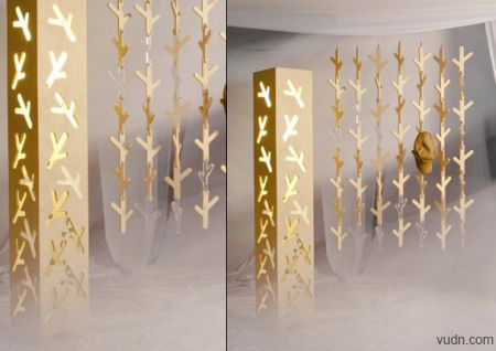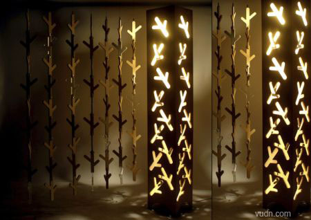 把這款“樹杈”裝飾燈從商店里抱回家,首先得把“樹杈”與模版分離。如此一來,一串串自然連接起來的“樹杈”就可以并列懸掛,充當(dāng)裝飾簾子,而這款簾子還能客串掛鉤角色,讓主人隨手即可將帽子、圍巾等小物件放置起來。至于剩下的模版就可以進(jìn)行粘合,里面安裝好燈泡,一款光影裝飾燈便也新鮮出爐了。