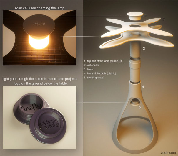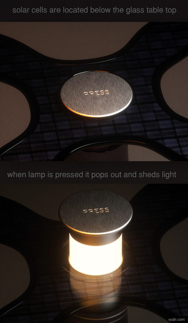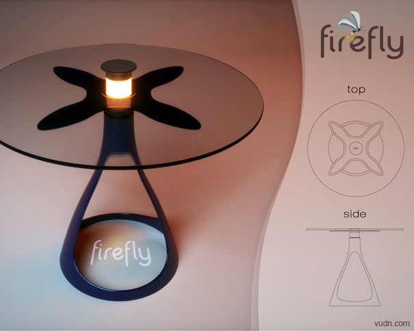 這是由設(shè)計(jì)師Vuk Dragovic設(shè)計(jì)的一款茶幾桌,它類似于以往的燭臺茶幾,只是將蠟燭由夜光燈代替,這樣減小了火災(zāi)災(zāi)害發(fā)生的可能。