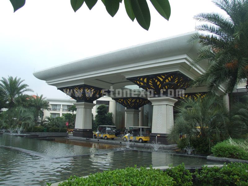 東莞三正半山酒店是一家五星級(jí)酒店,酒店風(fēng)格時(shí)尚簡(jiǎn)約,造型獨(dú)特,給人輕松愉快的心情。該酒店工程主要石材用料為:金年華、黃家金、白宮米黃、黑金砂
