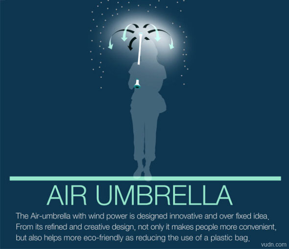 空氣雨傘借助風(fēng)能為使用者擋雨。這是一項富有創(chuàng)新精神的設(shè)計,打破了人們對雨傘的固有想法。通過對傳統(tǒng)雨傘設(shè)計加以改進(jìn)并添加富有創(chuàng)造性的元素,空氣雨傘讓用戶享受到更大便利。此外,由于減少了對塑料袋的需求,它同樣是一款環(huán)保雨傘。