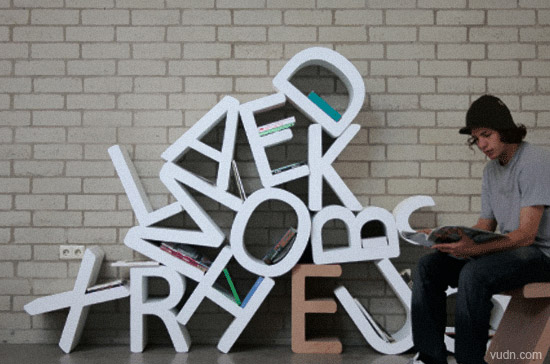 想要一個足夠個性的書架?這堆凌亂的字母也許會合你的胃口。一堆毫無秩序的字母貼著墻根疊起來,隨便找些縫隙把??吹臅倦s志放進去就好了,隨便拉出類似Z或者H或者E這樣的字母,還能當?shù)首幼?/P>