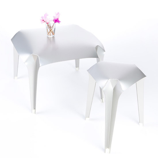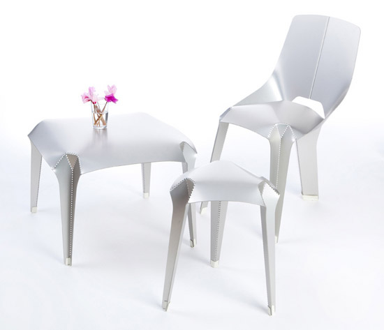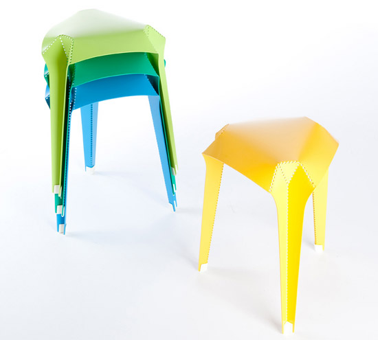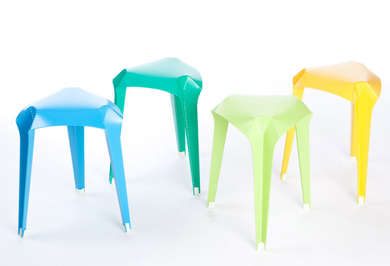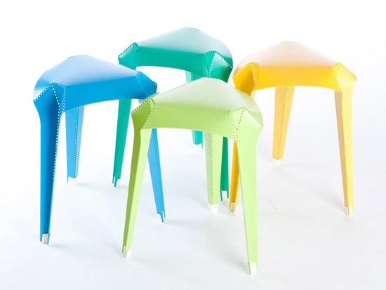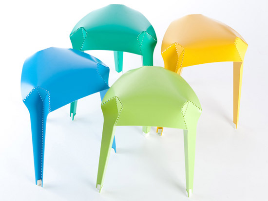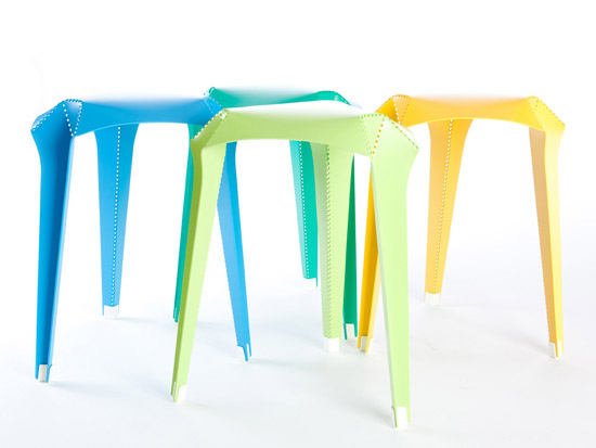 以色列設(shè)計機構(gòu)bakery的設(shè)計師Ran Amitai設(shè)計了這一系列凳子以及一個咖啡桌。這一系列作品的造型非常像手工制作的折紙玩具,Ran Amitai將作品命名為:材料的本質(zhì)。