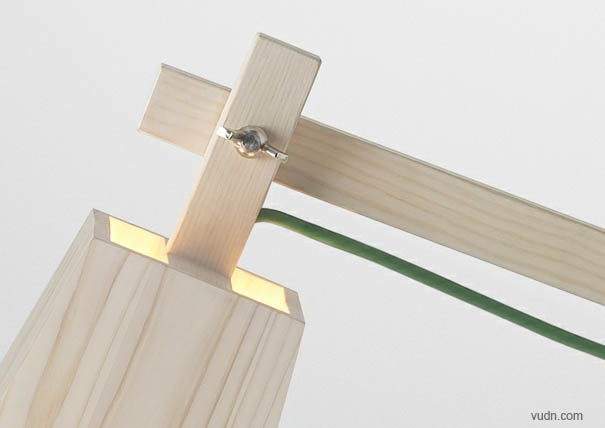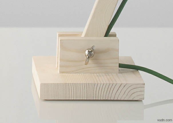 你想在桌子上擁有一個簡單的臺燈嗎?讓它擁有兩個接頭、一個底座、一根線和一點微弱的光。那么TAF設(shè)計了一款這樣的燈,這個產(chǎn)品最突出的理念是真誠,這就是為什么所有螺栓、接頭、螺絲都設(shè)計成突出來的原因。這盞臺燈由松木制成,大概有50cm高,上面連著綠色或白色的線。