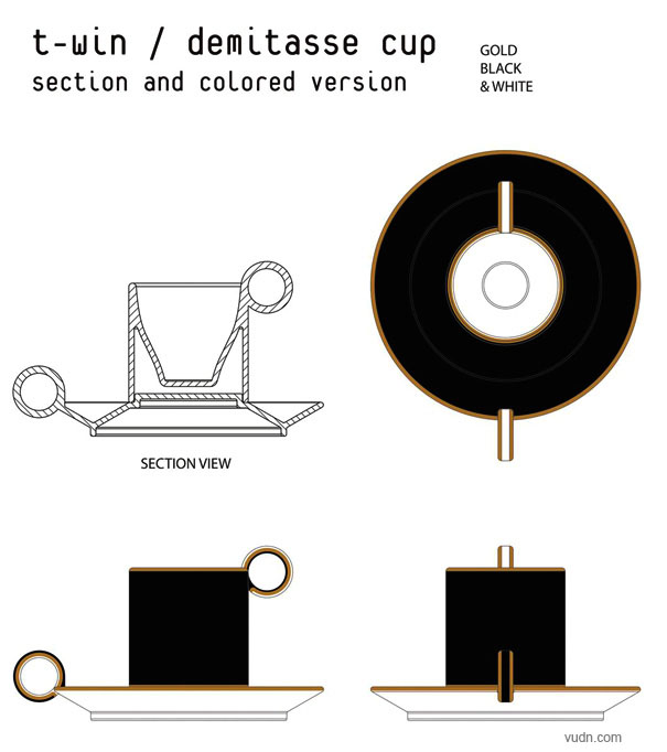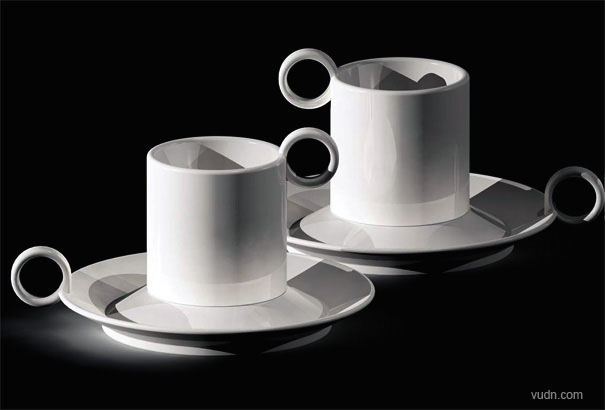 這里要說的是設(shè)計新穎大膽的茶杯。它看上去很奇妙,彎曲的把手放置在很奇怪的位置上。我不能確定很喜歡它,因為它的把手很高,不拿把手的部位會碰到裝滿熱茶的杯子,這應(yīng)該會很不舒服。而從另一角度看,杯托的中心上升到茶杯中,可以防止茶杯滑落,這很令我喜歡。