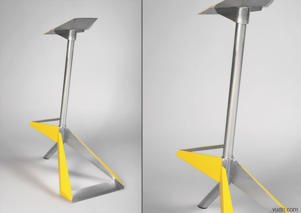 這把椅子是由以色列工業(yè)設(shè)計專業(yè)學生Daniel Levin設(shè)計的。它的造型靈感來自動物,Daniel Levin用古老的折紙藝術(shù)創(chuàng)造了這個金屬板材的椅子。