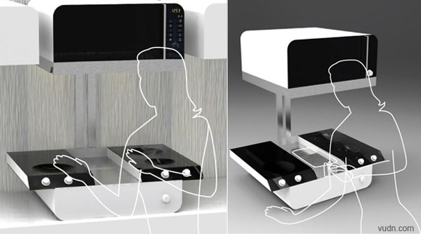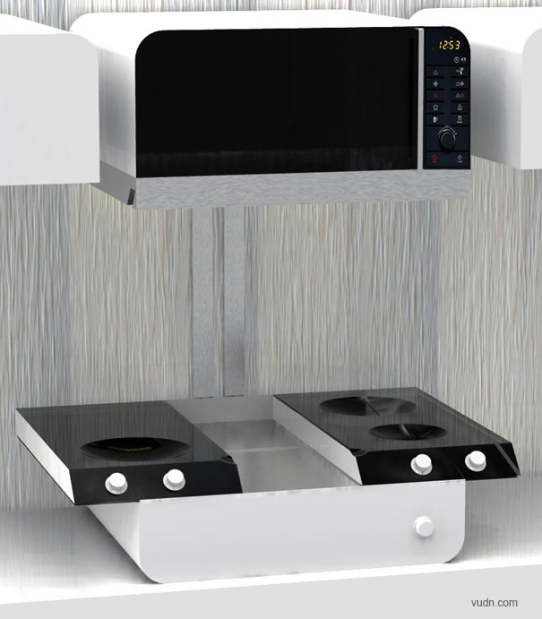 這是一個(gè)集微波爐、電炸鍋于一身的印度式設(shè)計(jì)廚具,電炸鍋可以做出很多美味的印度菜,同時(shí)產(chǎn)生的油煙氣體被上面的引擎蓋所吸走。大家發(fā)現(xiàn)它是一個(gè)相當(dāng)有效率的設(shè)計(jì)了嗎?我特別喜歡印度食物,但是發(fā)現(xiàn)香料的味道是如此強(qiáng)烈,經(jīng)常被嗆得流眼淚,但是有了這個(gè)產(chǎn)品就不怕了。