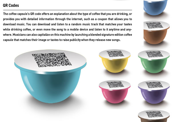 這款咖啡機(jī)內(nèi)嵌了Android系統(tǒng),并且在每個(gè)咖啡膠囊上都印有一個(gè)二維碼,當(dāng)用戶把咖啡膠囊放進(jìn)咖啡機(jī)里,系統(tǒng)會(huì)自動(dòng)掃描二維碼。這樣,用戶就可以邊品嘗咖啡,邊享受音樂(lè)了。