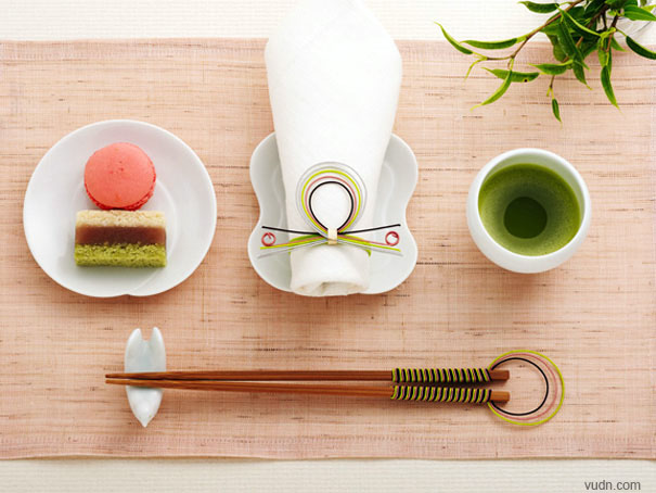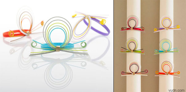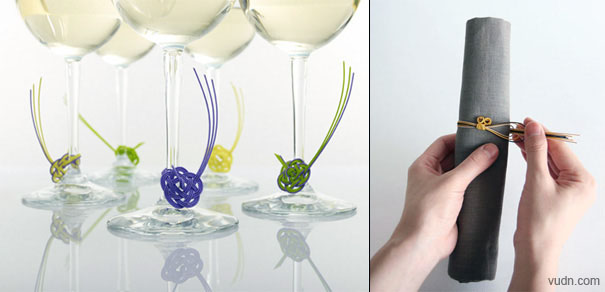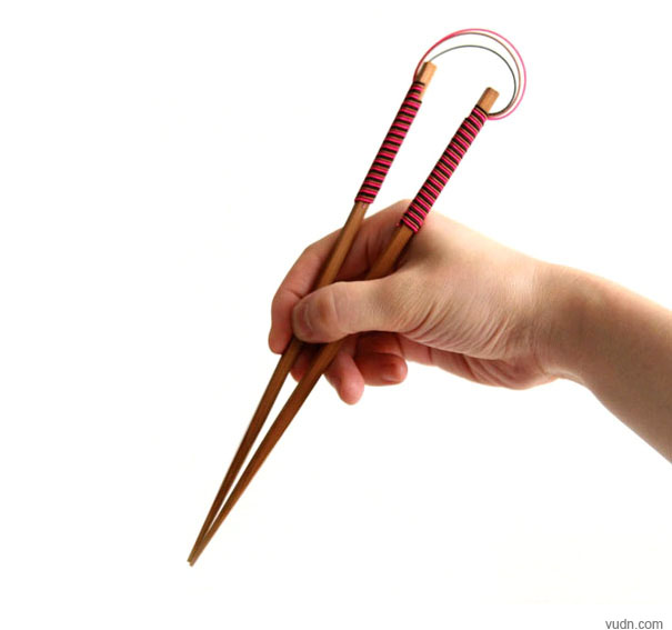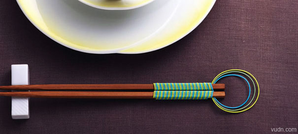 隨著紙工藝的流行,繩工藝也越來越有創(chuàng)造力,它不但應(yīng)用于服飾的裝飾,筷子也被修飾的無與倫比。單調(diào)乏味的筷子被錯(cuò)綜復(fù)雜的繩子環(huán)繞,五顏六色的視覺感增添了我們的食欲。兩根筷子連掛在一條繩子上,這樣也避免了吃飯的時(shí)候有一根筷子會(huì)掉下來。