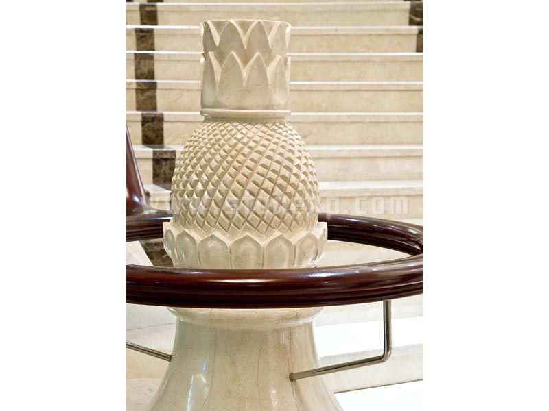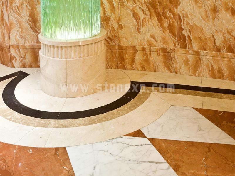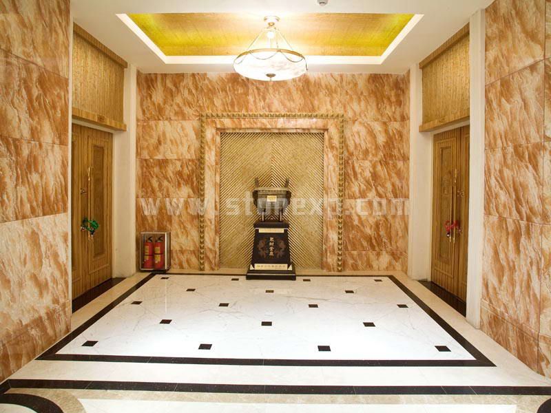 項(xiàng)目名稱:青島國(guó)資委貴賓樓 地點(diǎn):山東青島 品種:莎安娜米黃、橙皮紅、雪花白、黑金沙、木紋石、淺啡網(wǎng)、深啡網(wǎng)、雨林綠、大花綠。 概述: 青島國(guó)資委貴賓樓內(nèi)部裝修和外部裝修都用了大量的天然石材,是業(yè)內(nèi)公認(rèn)的石材經(jīng)典工程,其石材應(yīng)用非常廣泛,如石材旋梯、石材水刀拼花、石材雕塑等。