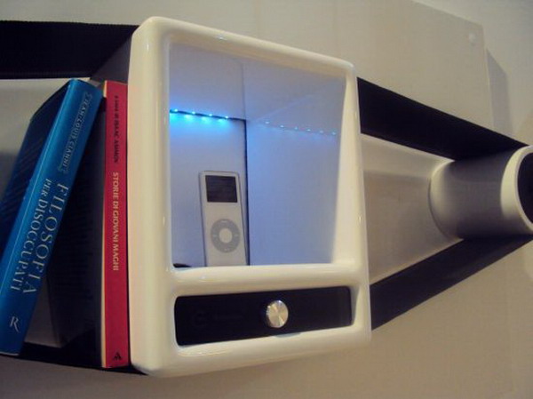 書架和揚(yáng)聲器都是我們?nèi)粘I钪衅毡榇嬖诘奈锲?,如今,意大利設(shè)計(jì)師Arianna Vivenzio將兩者巧妙地結(jié)合在了一起。這種新式設(shè)備以一個(gè)繃帶為主要框架,其中可加入iPhone和iPod等音樂設(shè)備,兩邊的40瓦揚(yáng)聲器掛鉤也充分地展示出了該產(chǎn)品的優(yōu)良音樂性能,而其可與電視、錄像機(jī)等相連接的功能更是方便了更多的用戶。