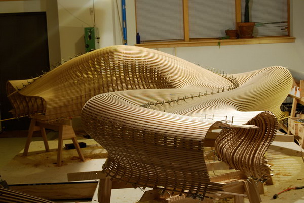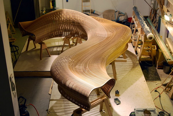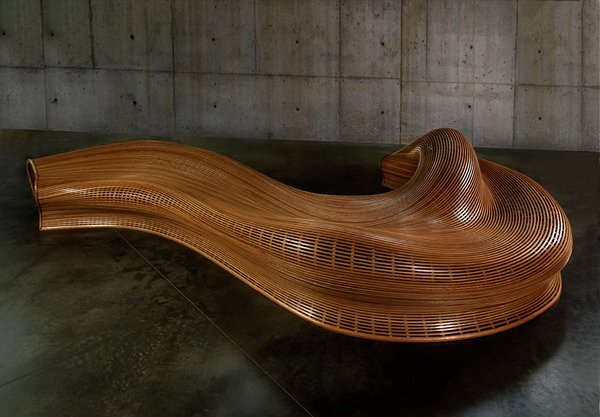 美國(guó)設(shè)計(jì)師matthias pliessnig的作品囊括了手工藝、藝術(shù)和設(shè)計(jì)三個(gè)概念。他的作品將歷史悠久的工藝技術(shù)和現(xiàn)代的數(shù)字美學(xué)結(jié)合起來(lái)協(xié)同工作,在運(yùn)用手工藝人技術(shù)的同時(shí),結(jié)合數(shù)字技術(shù)將它們實(shí)現(xiàn)出來(lái)。最近他剛完成了“amada”作品,這個(gè)設(shè)計(jì)是為一個(gè)私人業(yè)主設(shè)計(jì)的,這位業(yè)主希望在自己的起居室里放置一把流動(dòng)的長(zhǎng)凳。設(shè)計(jì)師希望讓使用者可以在椅子上輕松的觀察到各個(gè)方向。這個(gè)長(zhǎng)凳全部由被風(fēng)干的白色橡木制作,然后經(jīng)高溫蒸發(fā)被彎曲成優(yōu)美的曲線。