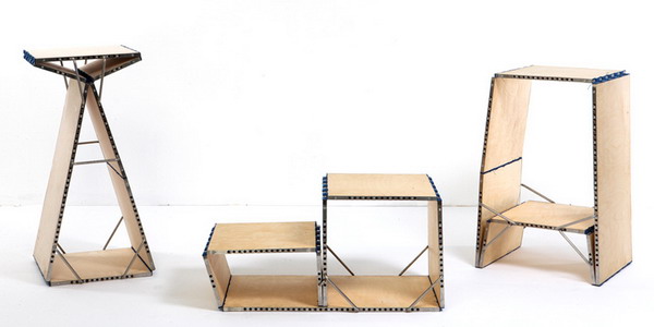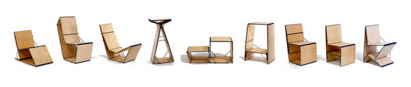 “l(fā)oop chair”是設(shè)計師 boaz mendel的作品,這款座椅是由7塊長度不同的板子組成,這些板子再用五金件相互連接形成一個回路。完成后的設(shè)計可以自由創(chuàng)作多種不同的家具形式。折疊五金連接件并附加一些特殊的鏈接裝置可以改變這款椅子的形態(tài),根據(jù)需求滿足不同的需要。