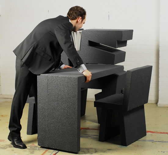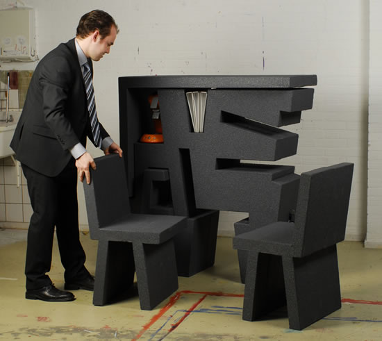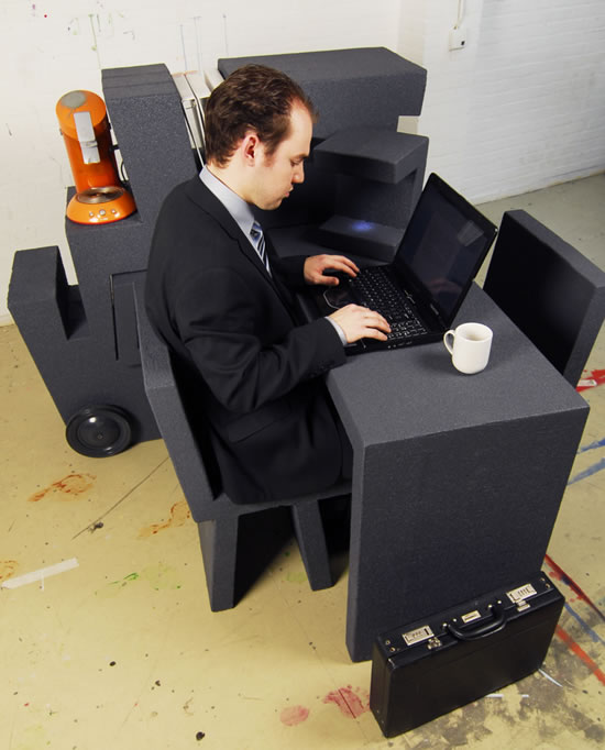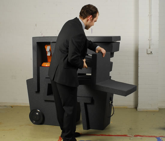 “kruikantoor”是一個便攜式辦公室,由EPS泡沫材料制成,外表有一層 熱噴涂聚脲。這個移動辦公室包括兩把椅子,一個桌子,臺燈,電源插口以及儲存柜。你可以把這些零部件組合起來變成一個整體的推車或是把它們拆分開來組成一個完備的辦公室環(huán)境。這個辦公室裝有輪子,可以讓使用者便捷的改變工作地點。