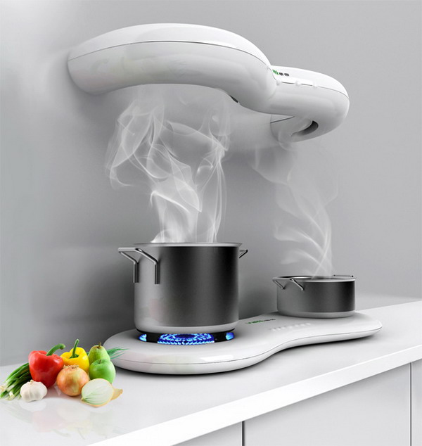 燃?xì)庠詈碗姶艩t是廚房必備的用具,但誰又會(huì)想到把它們組合在一起呢?設(shè)計(jì)師Chao Gao做到了,不僅把二者組合在一起而且還提供了相應(yīng)的抽油煙機(jī),太實(shí)用了!這套組合型煙灶被稱為EEH,雖然沒有炫麗的顏色,簡(jiǎn)單的白色與流水線條組合得大方雅觀,加上排氣扇,可謂是搭配得天衣無縫!非常有創(chuàng)意而又實(shí)在的一款廚具設(shè)計(jì)。