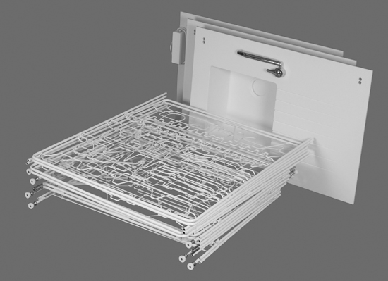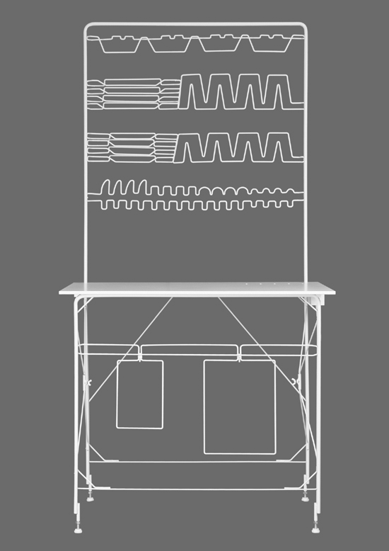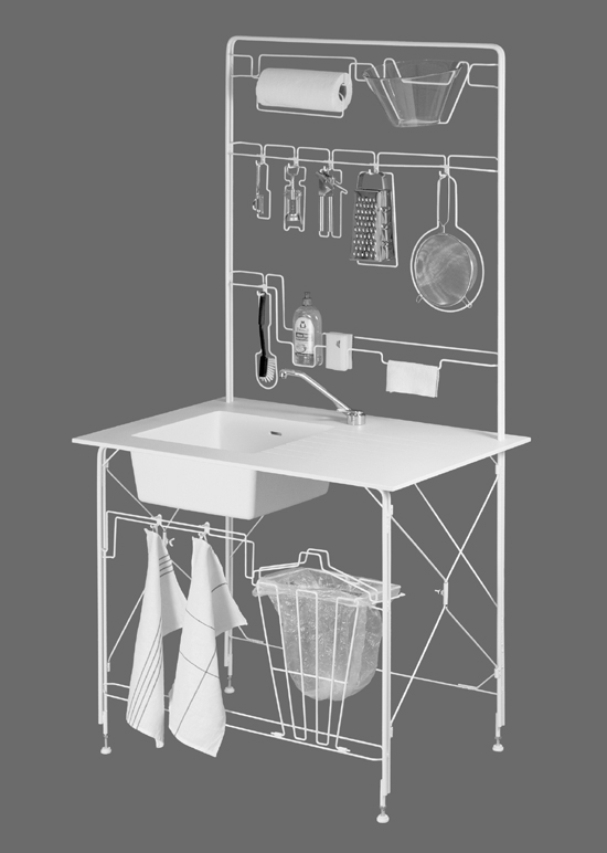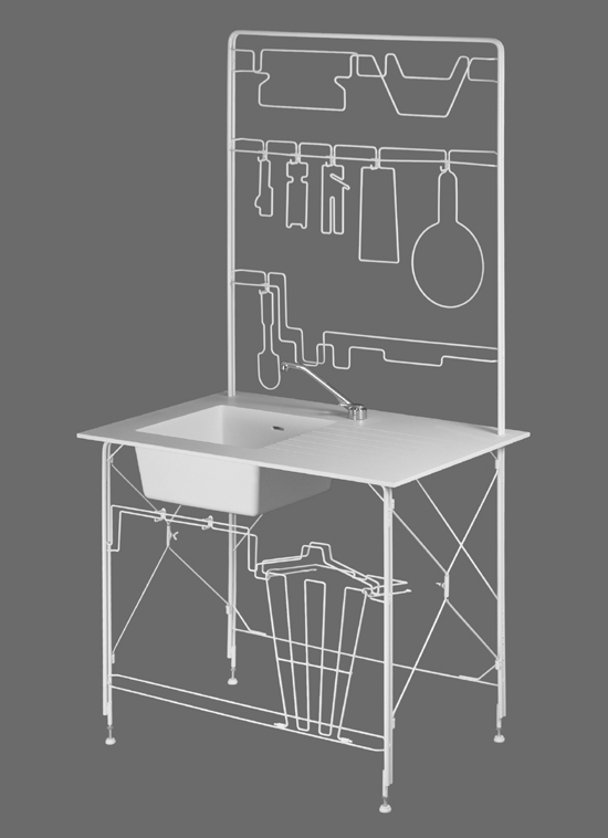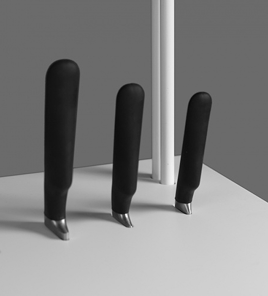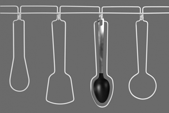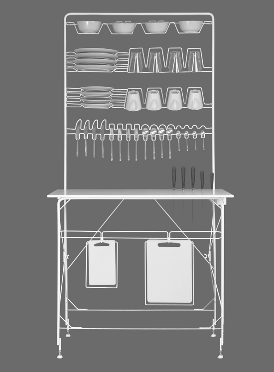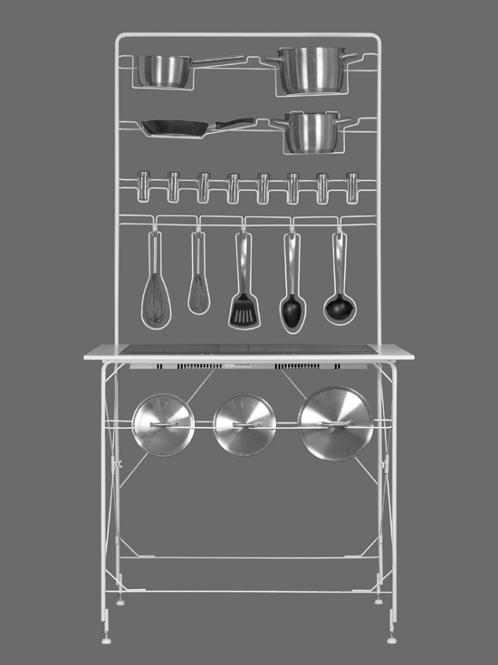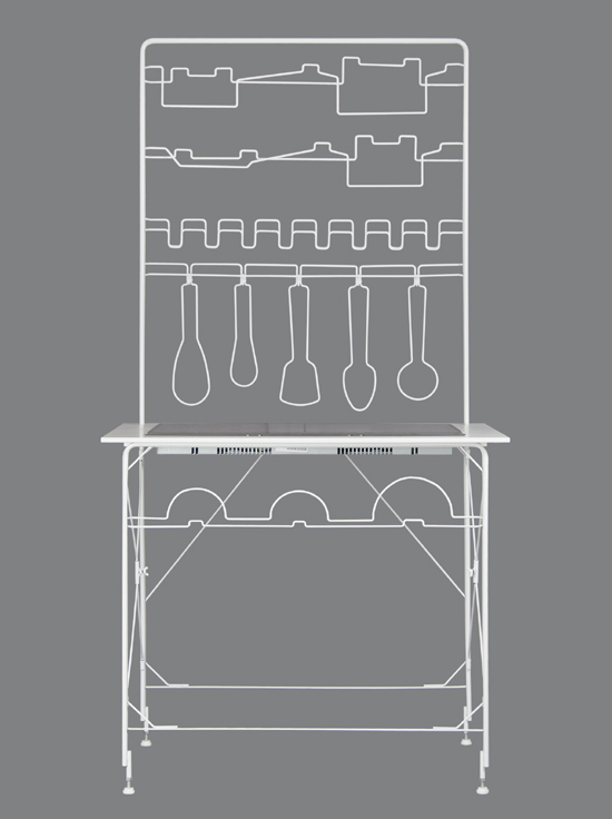 德國設計師 Burkhard Schaller 利用彎曲的線條制作了這種簡約、簡單的廚具放置架,所有廚具放置的部分,都有著它線條的形狀?;居糜谛⌒蛻艏彝?,或者說是家以外的辦公室等之類的,比較節(jié)省地方和方便拆卸。