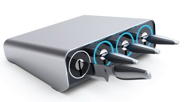 現(xiàn)有刀插都存在什么樣的問(wèn)題?我們看來(lái),最大的問(wèn)題可能是安全,任何人都可以輕易地將刀從刀插中取出——這對(duì)你我會(huì)是一種方便,但是對(duì)小朋友而言,卻是潛在的危險(xiǎn)……