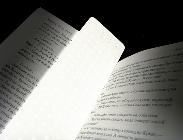 第一眼看到它,以為這是個(gè)會(huì)發(fā)光的遙控器,其實(shí)它是看書(shū)用的夜燈。這塊透明的塑料板內(nèi)部裝有LED燈和充電電池,采用觸摸式開(kāi)關(guān),差不多只有兩張書(shū)簽?zāi)敲春瘢磿?shū)的時(shí)候像書(shū)簽一樣夾在書(shū)頁(yè)中即可。再想想傳統(tǒng)臺(tái)燈,開(kāi)著叨擾身邊的人不說(shuō),躺著看書(shū)的時(shí)候還得很不舒服地配合臺(tái)燈的角度。