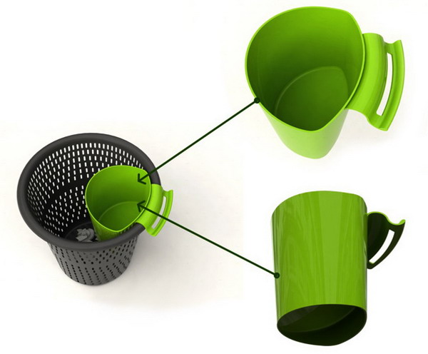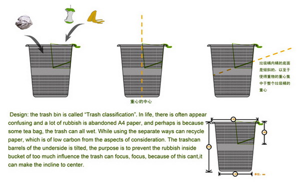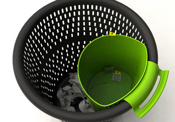 中國設(shè)計(jì)師胡馨園 (音譯,Hu Xinyuan)出于方便垃圾分類的考慮,設(shè)計(jì)了這個(gè)桶內(nèi)有桶的Trash Classification家用垃圾桶,其實(shí)就相當(dāng)于是在普通的紙簍上掛了一個(gè)小一號(hào)的桶,廢紙等無機(jī)垃圾可投入大桶,而瓜皮果核等有機(jī)垃圾則投入小桶,的確達(dá)到了有機(jī)無機(jī)干濕分離的效果。另外,小桶的底部是向內(nèi)傾斜,這樣就避免了重心向一側(cè)傾斜而打翻垃圾。
