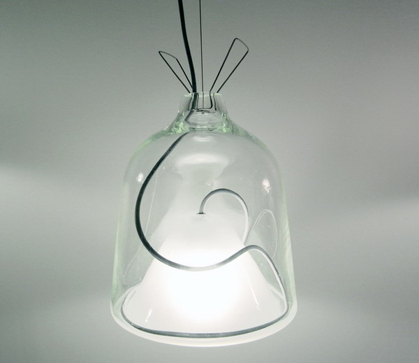 德國設計師hanna krüger用舊玻璃瓶和碗制作了一款“vaiss.eau”吊燈,她試圖重新設計那些我們?nèi)粘I钪兴究找姂T的物品。人工吹制玻璃和雙壁透明玻璃墜便是傳統(tǒng)手工藝玻璃制品和現(xiàn)代設計之間的經(jīng)典范例。'vaiss.eau'吊燈作為[D3] design talents 的一部分在 2011年科隆家具展(imm cologne 2011)上展出。
