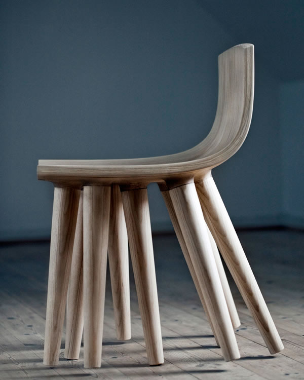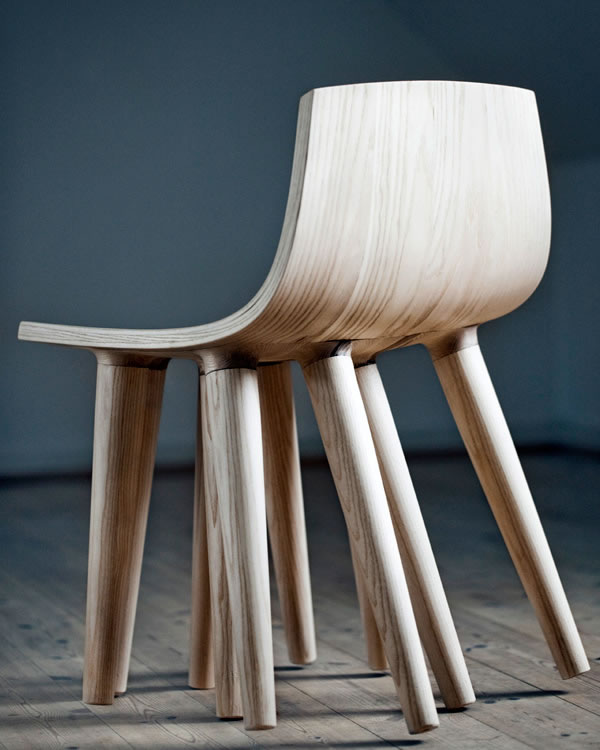 K to N Studio模仿墨魚的形狀,設(shè)計(jì)了這把有著十條腿的墨魚椅,它們由木頭做成,每次接觸地面的時(shí)候,三條腿同時(shí)著地,另外七條腿則是懸空的。當(dāng)你隨意擺動(dòng)椅子的時(shí)候,與地面接觸的椅腿則會(huì)發(fā)生變化。無聊時(shí),就騎著這條墨魚嘎達(dá)嘎達(dá)在屋里游來游去吧。