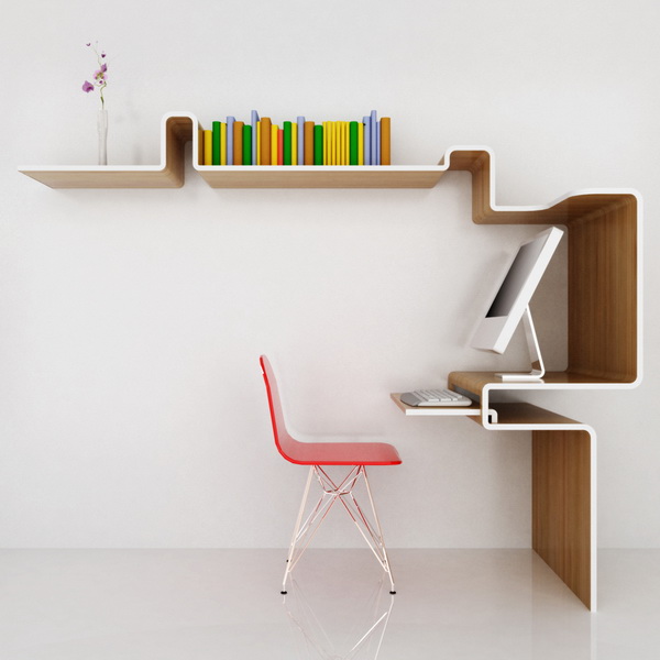 MisoSoupDesign 于2004年在紐約成立,自從被美國綠建筑委員會(huì)認(rèn)證后,從設(shè)計(jì)上開始注重環(huán)境的惡化以及有效資源的利用,不斷采用新的思路來減少原材料的浪費(fèi),不斷挖掘環(huán)保、能夠組合的新型家具。該產(chǎn)品是一個(gè)一體式的工作平臺(tái),將電腦桌和置物架融合在一起,也可以在置物架上放鮮花等小物件,有效的節(jié)約了空間,不過頭部空間有限,起身時(shí)需要注意高度了。