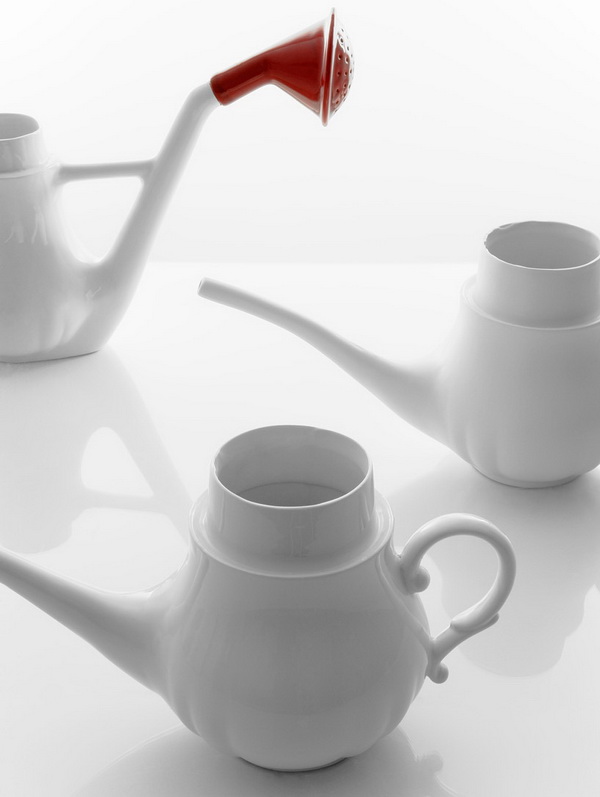 意大利設(shè)計(jì)師antonio aricò為garage design設(shè)計(jì)了“噴淋水壺watering kettle cans”,這個(gè)設(shè)計(jì)連接了家居生活和植物園林。設(shè)計(jì)師融合了茶壺和噴壺的形式,創(chuàng)造了一個(gè)多功能的產(chǎn)品。 這款陶瓷水壺是從兩個(gè)英式古董茶壺翻模而成,此外,設(shè)計(jì)師還附加了一個(gè)活動(dòng)噴嘴,讓這個(gè)產(chǎn)品可以自由裝換成噴壺或茶壺。