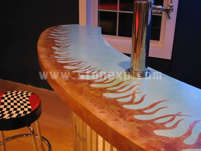 簡單描述:由天然石材打造的酒吧弧形吧臺,其石材造型如流線般順暢,富有藝術(shù)性,此種弧板工藝效果也是石材工藝?yán)锛庸るy度較高的一種。