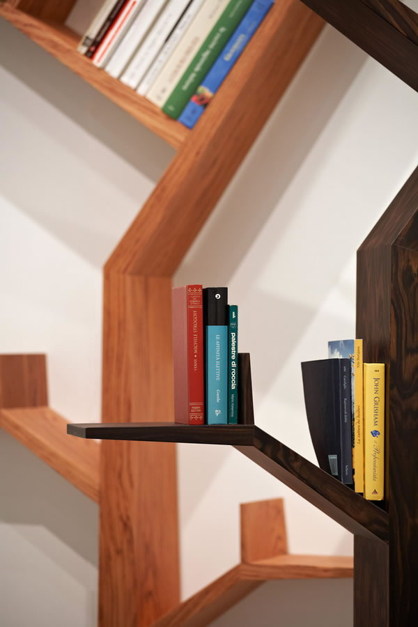 威尼斯設(shè)計(jì)師kostas syrtariotis在2011年米蘭設(shè)計(jì)周的kidsroomzoom活動(dòng)中展出了自己設(shè)計(jì)的最新產(chǎn)品“樹形書架”。這款書架顧名思義,取自樹木的形態(tài),它的枝杈在墻上伸展開來,使用者可以把書或其它小物件擺放在樹枝上。