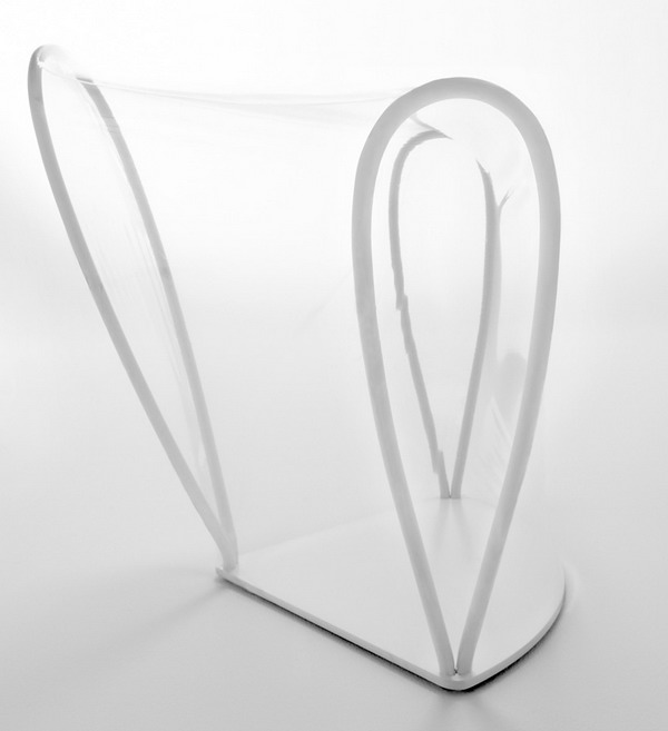日本設(shè)計(jì)事務(wù)所nendo新推出的透明椅表面上看好像只有靠背和扶手,但它其實(shí)是一款包裹著透明塑料薄膜,具有實(shí)用功能的椅子。透明材料經(jīng)常用于包裝那些精密儀器或是因震蕩或擠壓而容易隨壞的產(chǎn)品。nendo利用了這種材料的高彈性特點(diǎn)來制作椅子??芍^別出心裁。