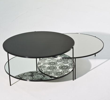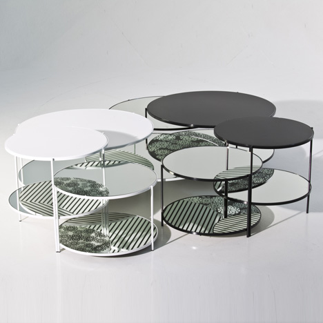 2011米蘭周的展覽上,意大利品牌Moroso展示了日本設(shè)計(jì)師nendo為其設(shè)計(jì)的矮桌子組合,名為池塘,它的利用高低錯(cuò)落的桌面可展示出桌子底部的圖案花紋。圓形錯(cuò)落的桌面設(shè)計(jì)仿佛荷塘上的荷葉,周圍的樹木茂盛、春暖花開,打造出大自然的沉默、靜謐的感覺。桌子的反射鏡面更象征著地球的一般光明和一般黑暗,寓意深刻。