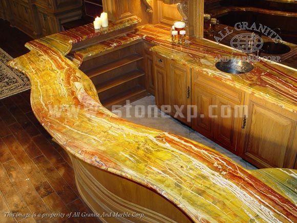 簡單描述:由天然石材打造的廚房弧形臺面板,其石材造型如流線般順暢,富有藝術(shù)性,此種弧板工藝效果也是石材工藝?yán)锛庸るy度較高的一種。