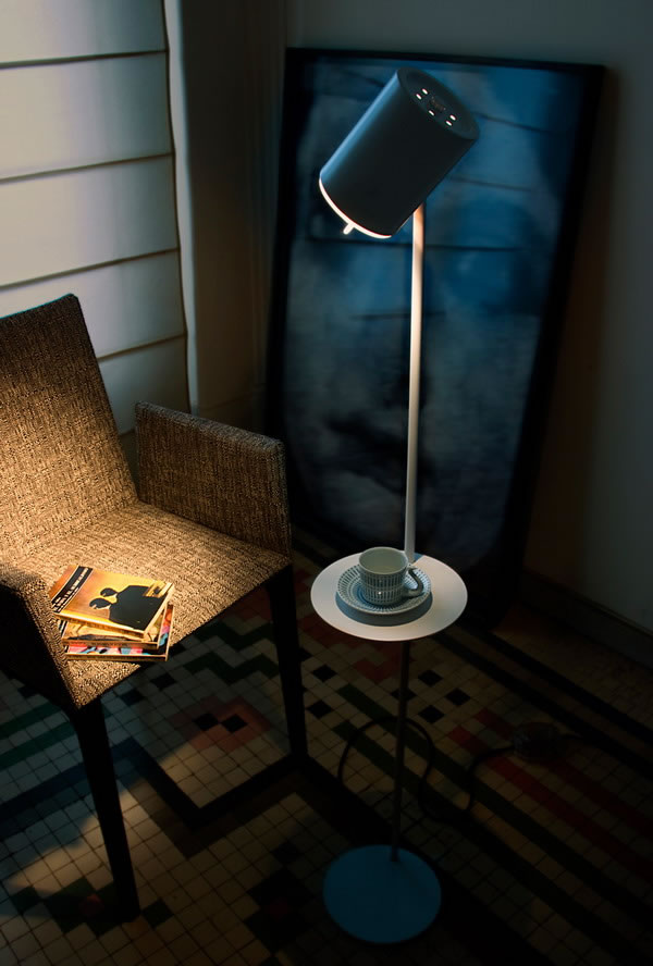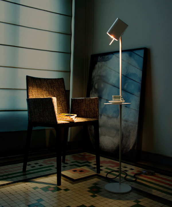 很多時候我們習(xí)慣在閱讀的同時,在身旁放上一杯咖啡、或者一杯茶,圖中的這個產(chǎn)品,可以很好的將書、茶、燈三者結(jié)合在一起,功能簡潔明了。