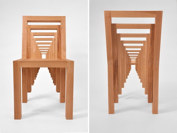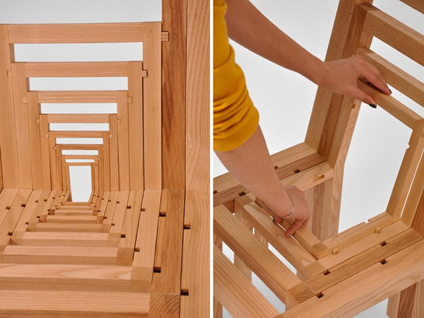 “inception”是一款概念座椅,設(shè)計(jì)師復(fù)制了最原始的座椅形態(tài),并依次漸進(jìn)變小,層層疊加在一起組成最終成品。這把概念椅是羅德島設(shè)計(jì)學(xué)院(RISD)家具設(shè)計(jì)專業(yè)的學(xué)生vivian chiu的作品。 inception座椅一共由10個(gè)椅子框架組成,框架與框架之間通過椅背和坐面內(nèi)側(cè)的凹槽相連。每個(gè)框架的邊緣都安裝了掛鉤并與相連框架的凹槽連接,使用者可以輕松滑動(dòng)來拼裝座椅。