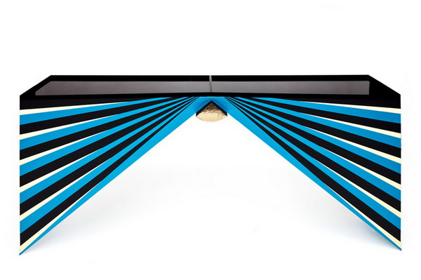 johnson trading gallery畫廊為紐約建筑師rafael de cárdenas舉辦了首個家具作品展覽。這組作品的在風(fēng)格上借鑒了bruce goff 和frank lloyd right,rafael用方塊作為這一系列的基本形,通過旋轉(zhuǎn)、鏡像和增殖來豐富這一形態(tài)。每件作品都由一系列復(fù)雜的幾何關(guān)系構(gòu)成——方塊被三角形和半圓形固定住——它們作為既是裝飾性部件,也是必要的結(jié)構(gòu)體。