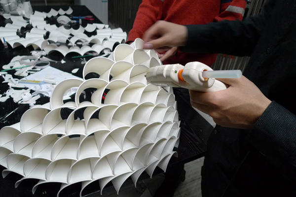 設(shè)計(jì)師賦予了回收來(lái)的一次性紙杯新的生命,把它們切成一半后,再將其粘貼疊加在一起,構(gòu)成一個(gè)獨(dú)特的壁燈燈罩。當(dāng)紙杯燈罩覆蓋住光源時(shí),形成了神秘的射線燈。它的制作材料相當(dāng)簡(jiǎn)單,有興趣你也可以diy一個(gè)。