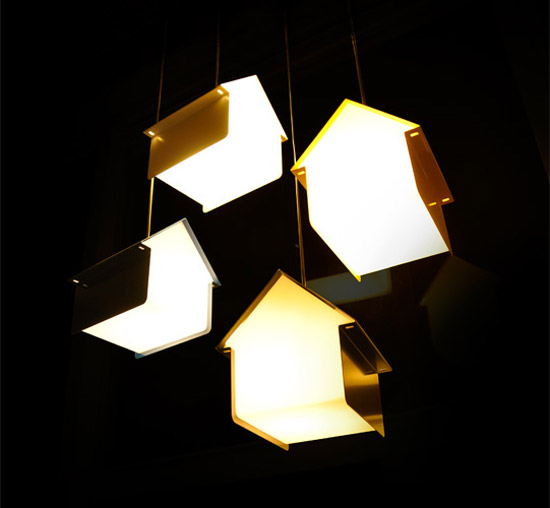 Kristian Aus 為意大利家具品牌 UNDER 所設計的吊燈,可愛的小房屋一個個懸掛于天花板上,還算挺可愛的,放在兒童房不錯。