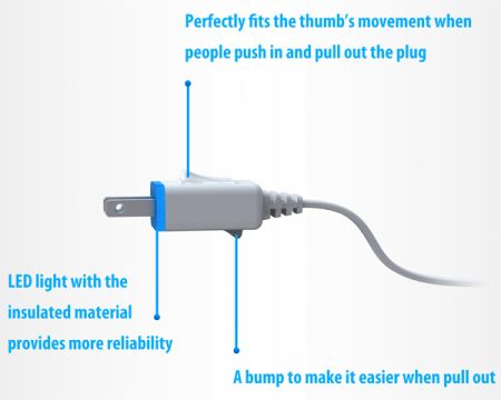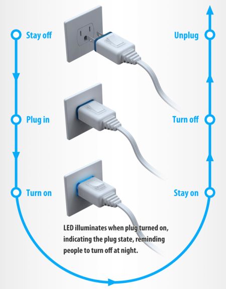 在多個(gè)電器同時(shí)使用一個(gè)插線板時(shí),能夠單獨(dú)控制每個(gè)電源的開關(guān)不僅更加安全還可以節(jié)約用電。與傳統(tǒng)帶分控開關(guān)的插線板不同的是,這款插頭另辟蹊徑,從“根源”上控制用電。由于開關(guān)的位置特殊,拔下電源時(shí)順便就會(huì)關(guān)閉開關(guān),可以防止電火花飛濺,比一般插頭更加安全。插頭上的開關(guān)還附帶LED小燈,提示是否已經(jīng)接通電源。同時(shí),這款插頭還在開關(guān)的另一面上設(shè)計(jì)了一個(gè)形狀類似開關(guān)的小凸起,讓用戶拔出電源時(shí)可以更加省力。