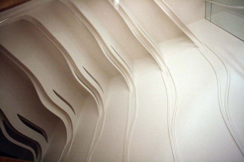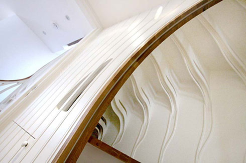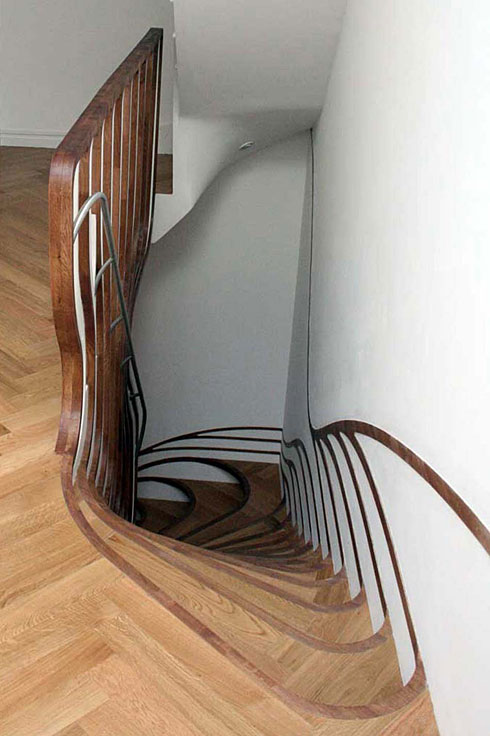 第一眼看這木頭樓梯給人的感覺就是亂套啦!這是由工作室Atmos Studio帶來的一款的木頭樓梯,它位于倫敦,通過大膽而大量的曲線運(yùn)用,在亂中體現(xiàn)出它的優(yōu)美。讓整個樓梯呈現(xiàn)出一種瘋狂的運(yùn)動感中,增加美感,再加上如雪般的優(yōu)雅,讓人體驗到一種高品質(zhì)的生活??赐赀@些樓梯后,讓我感到有點怪怪的,我個人覺得這樓梯裝飾是可以的,但現(xiàn)實中用太危險了,因為它太容易讓人錯覺。