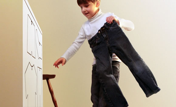 這個梳妝臺設計提醒人們,對小孩子無論多么微不足道的訓練,現(xiàn)在看起來都是他們成長每個階段的里程碑。梳妝臺是手工制作的,由工作人員在華盛頓的山景櫥柜完成,把楓木膠合板切割、螺釘、別針、訂書機組裝而成。這個梳妝臺抽屜的信息圖形提醒和引導孩子自己動手來完成一些事情,這似乎很有必要。