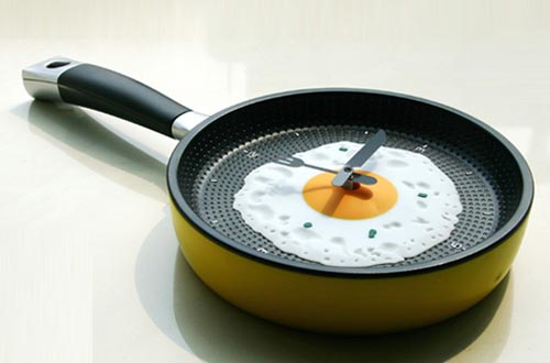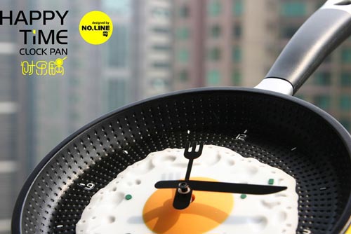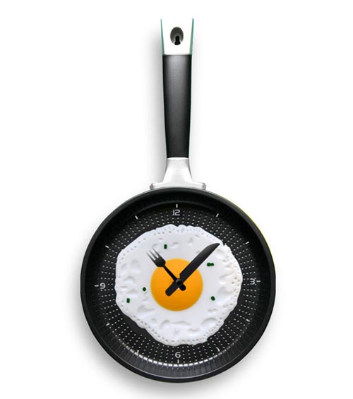 對(duì)于那些只知道煎個(gè)雞蛋就號(hào)稱會(huì)做菜的童鞋來說,這款掛鐘也許能讓你過目不忘。它的鐘表盤和把手是平底鍋,指針是刀和叉,而平底鍋上還有一個(gè)煎好的黃白分明的雞蛋。煎蛋鍋掛鐘不僅具備新穎獨(dú)特的創(chuàng)意和生活藝術(shù)造型,還能提醒你按時(shí)就餐。