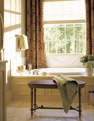 田園風格衛(wèi)浴間的裝修重點,就是要通過大量天然材料和綠色植物的運用,搭配曼妙溫馨的田園色彩,讓整個衛(wèi)浴空間環(huán)境散發(fā)著強烈的鄉(xiāng)村風情和野趣,讓那種輕松、不雕琢的感覺占據(jù)心靈,享受徹底的純凈。