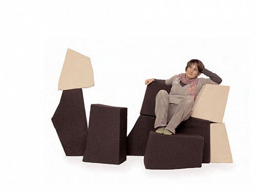 沙發(fā),不是只有一個坐墊一個靠背的,ChristiaLeing就設(shè)計了這款可以自由組合的沙發(fā),就像一套積木一樣,另外,它還可以拼湊成一堵墻,一堵沙發(fā)墻。