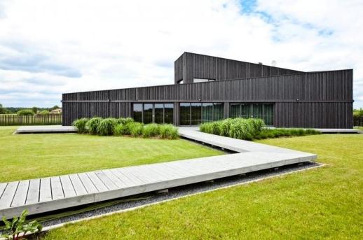 這個建筑圍繞一個不斷生長的元素化的中心院落構成,設計概念是日本風格的tsubo花園。這種花園一般都種植在封閉的空間內,代表著一些重要的元素,在室外甚至是室內它都創(chuàng)造出自然的特質。日本花園文化總是與住宅室內融合,創(chuàng)造出娛樂空間,圍繞花園的空間一般為透明空間,融合室內室外的同時也分隔室內室外,但是這個項目的主人拒絕了花園空間,取而代之的是座椅空間,住宅位于附近街道邊,朝著垂直方向延伸,南側的二樓空間更加向內靠,從而獲得直接的陽光。二樓臥室有著開闊的綠色露臺,建筑外表分布絲絲的黑木條,但它們完美融合,形成統(tǒng)一的整體。