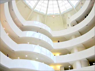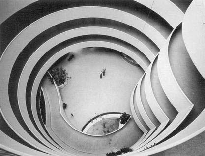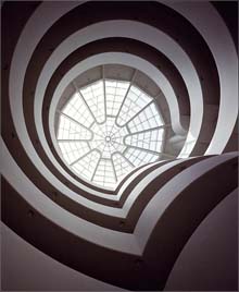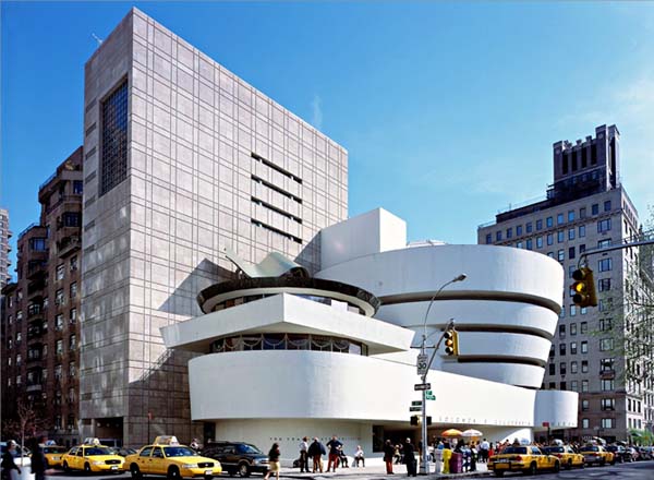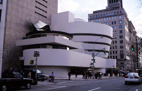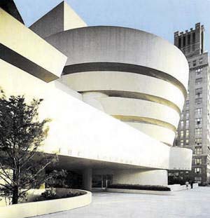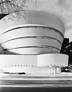 紐約古根海姆博物館是賴特晚年的杰作。1947年進行設(shè)計,1959年建成后,一直被認(rèn)為是現(xiàn)代建筑藝術(shù)的精品,以至于近四十年來博物館中的任何展品都無法與之比美。建筑外觀簡潔,白色,螺旋形混凝土結(jié)構(gòu),與傳統(tǒng)博物館的建筑風(fēng)格迥然不同。1969年又增加了一座長方形的3層輔助性建筑,1990年古根海姆博物館再次增建了一個矩形的附屬建筑,形成今天的樣子。